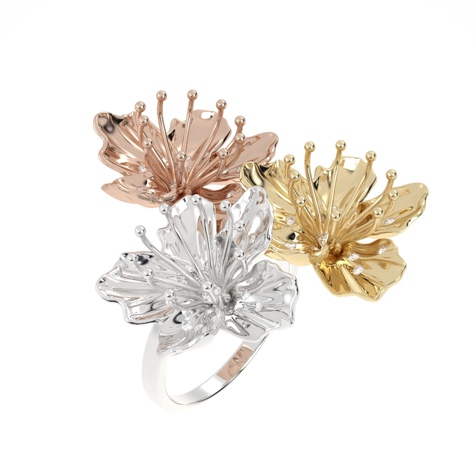 ANEL FLOR DE CEREJEIRA GRANDE COM BRILHANTE OURO ROSÉ