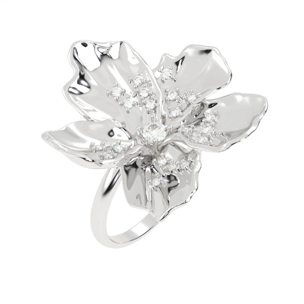 ANEL FLOR DE CEREJEIRA GRANDE COM BRILHANTE OURO BRANCO