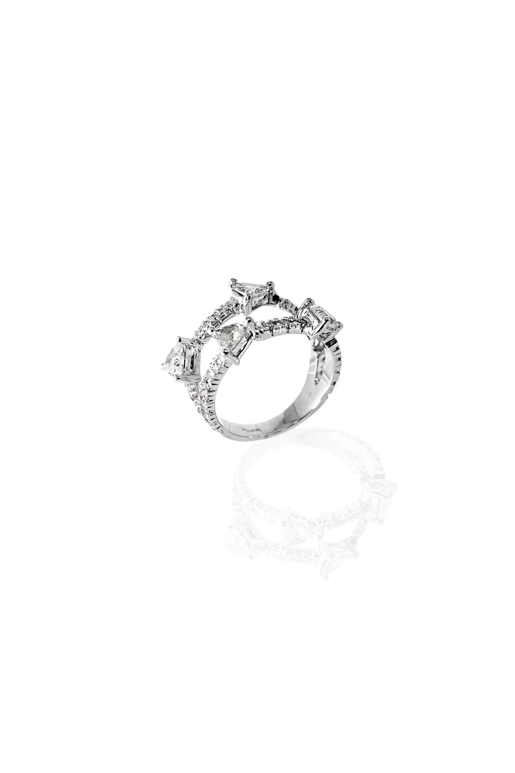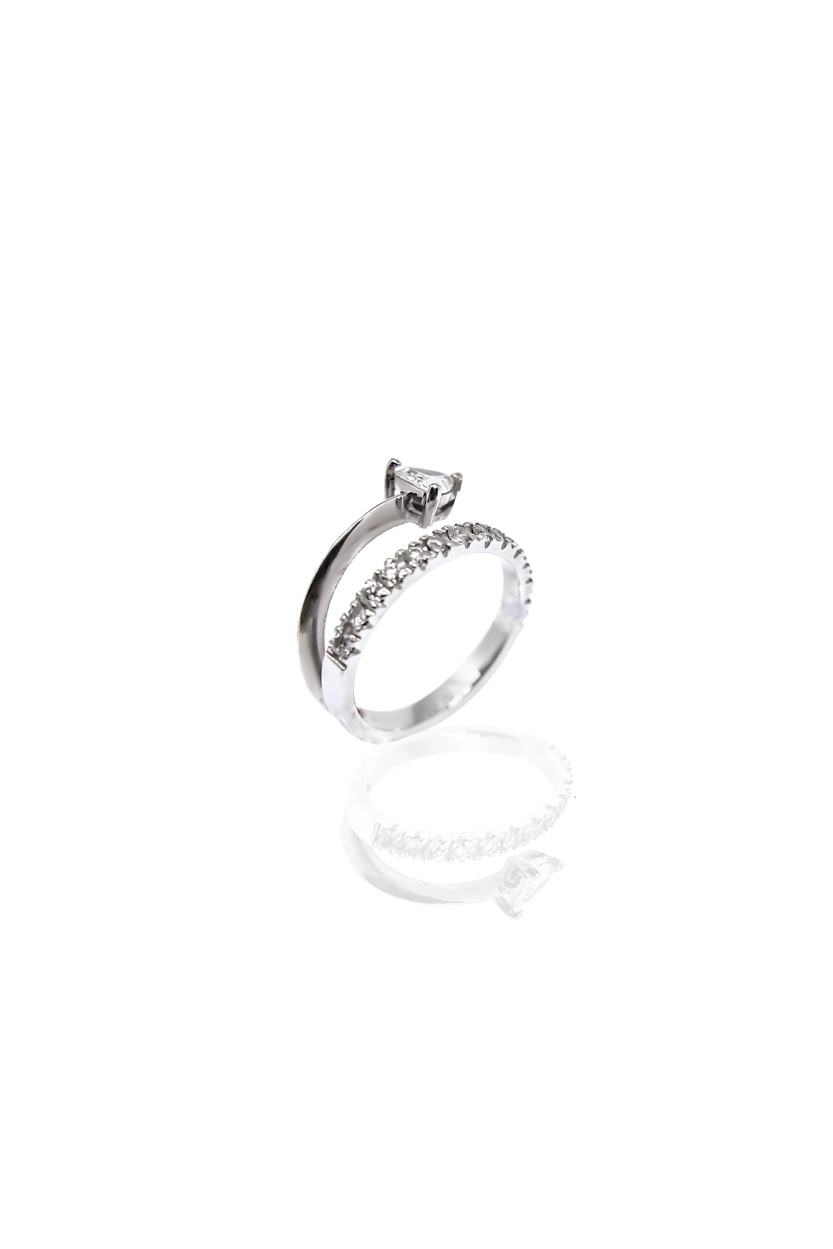 ANEL ICE CUBE FINO COM BRILHANTE AU BRANCO