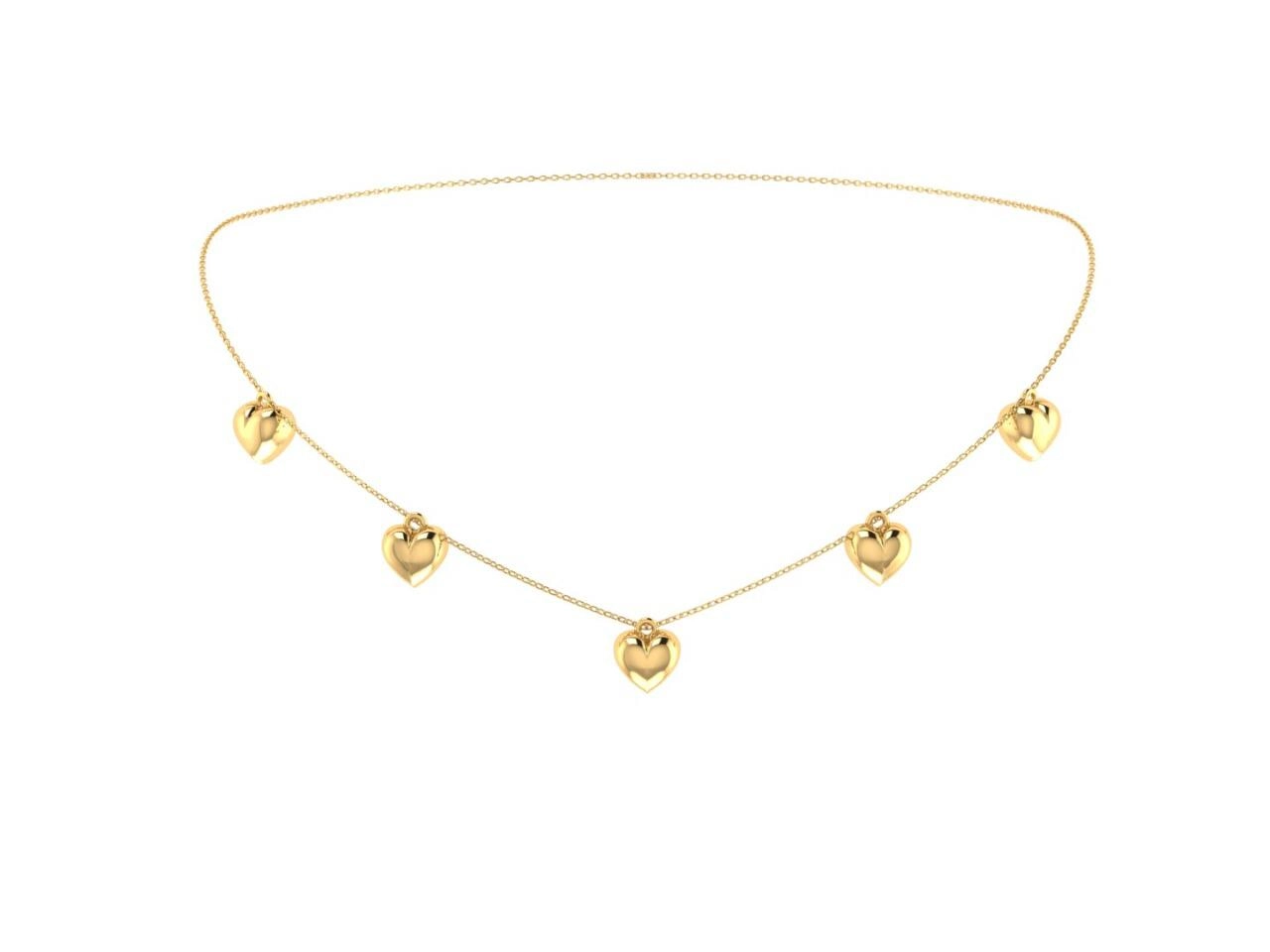 COLAR CINCO CORAÇÕES OURO AMARELO