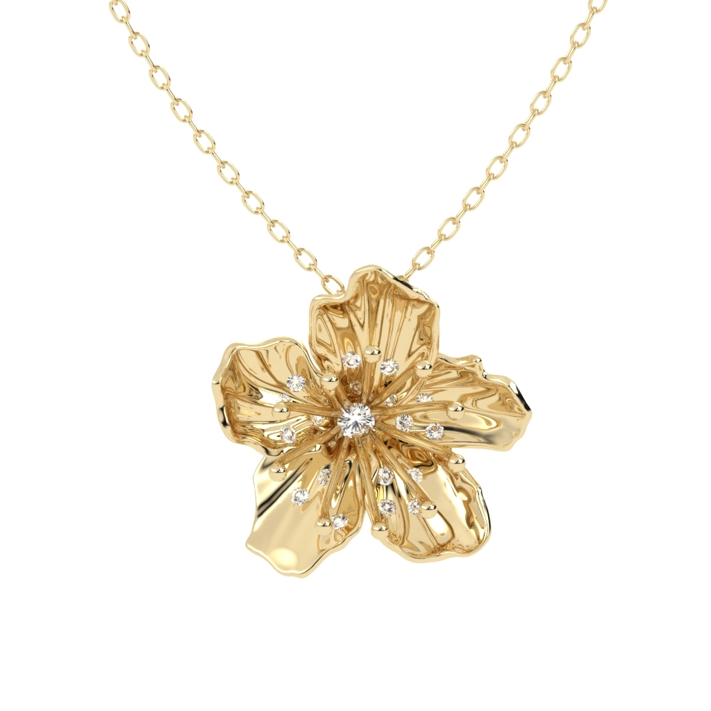 COLAR FLOR DE CEREJEIRA COM BRILHANTE OURO AMARELO