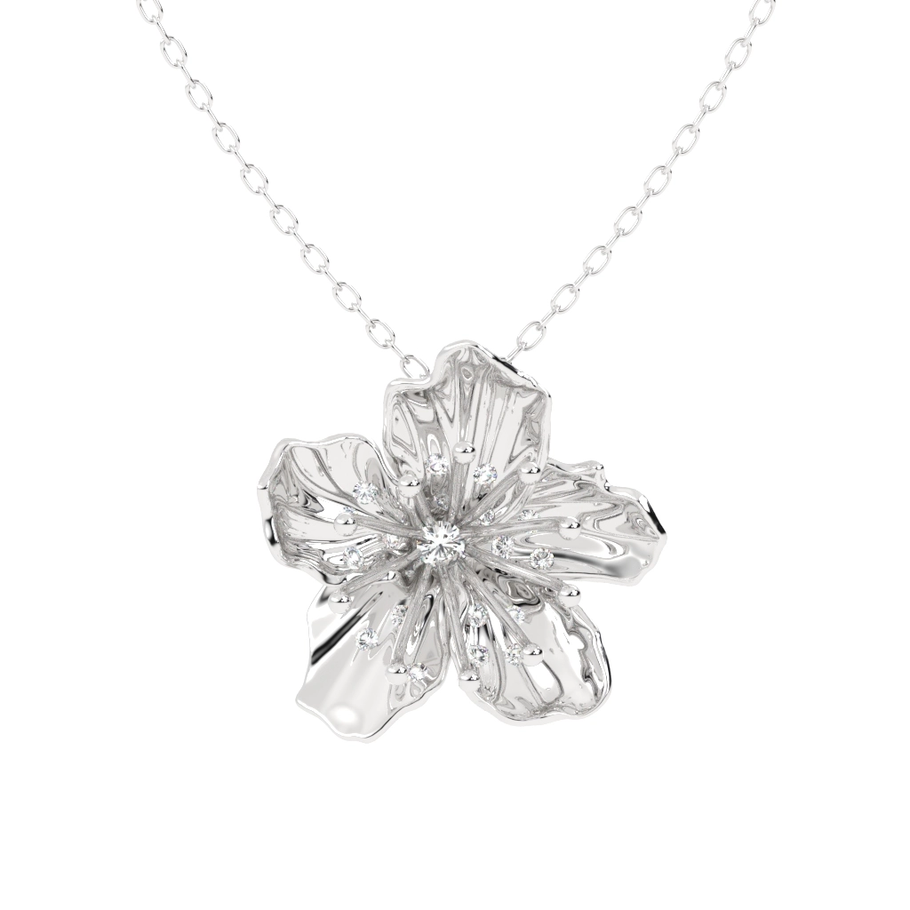 COLAR FLOR DE CEREJEIRA COM BRILHANTE OURO BRANCO