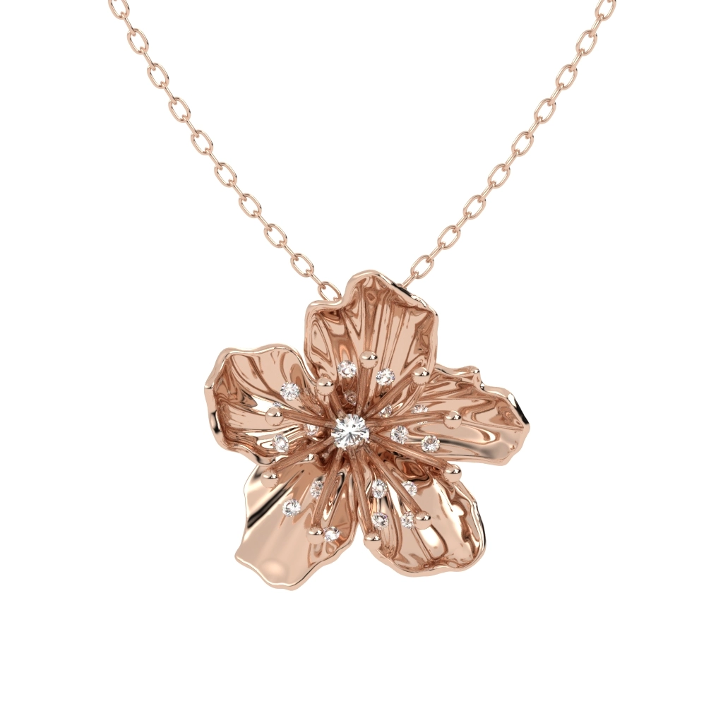 COLAR FLOR DE CEREJEIRA COM BRILHANTE OURO ROSÉ