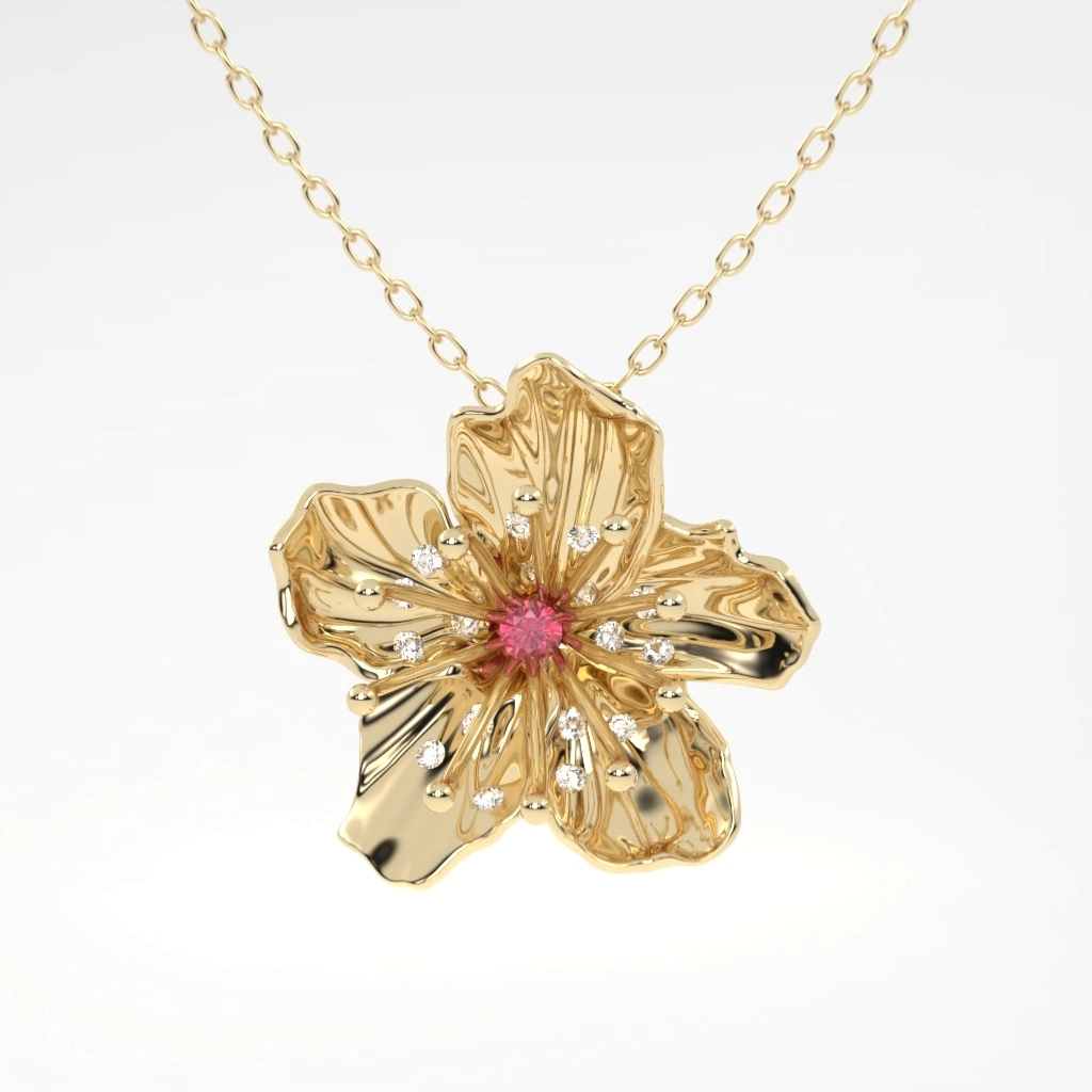 COLAR FLOR DE CEREJEIRA COM RUBI OURO AMARELO