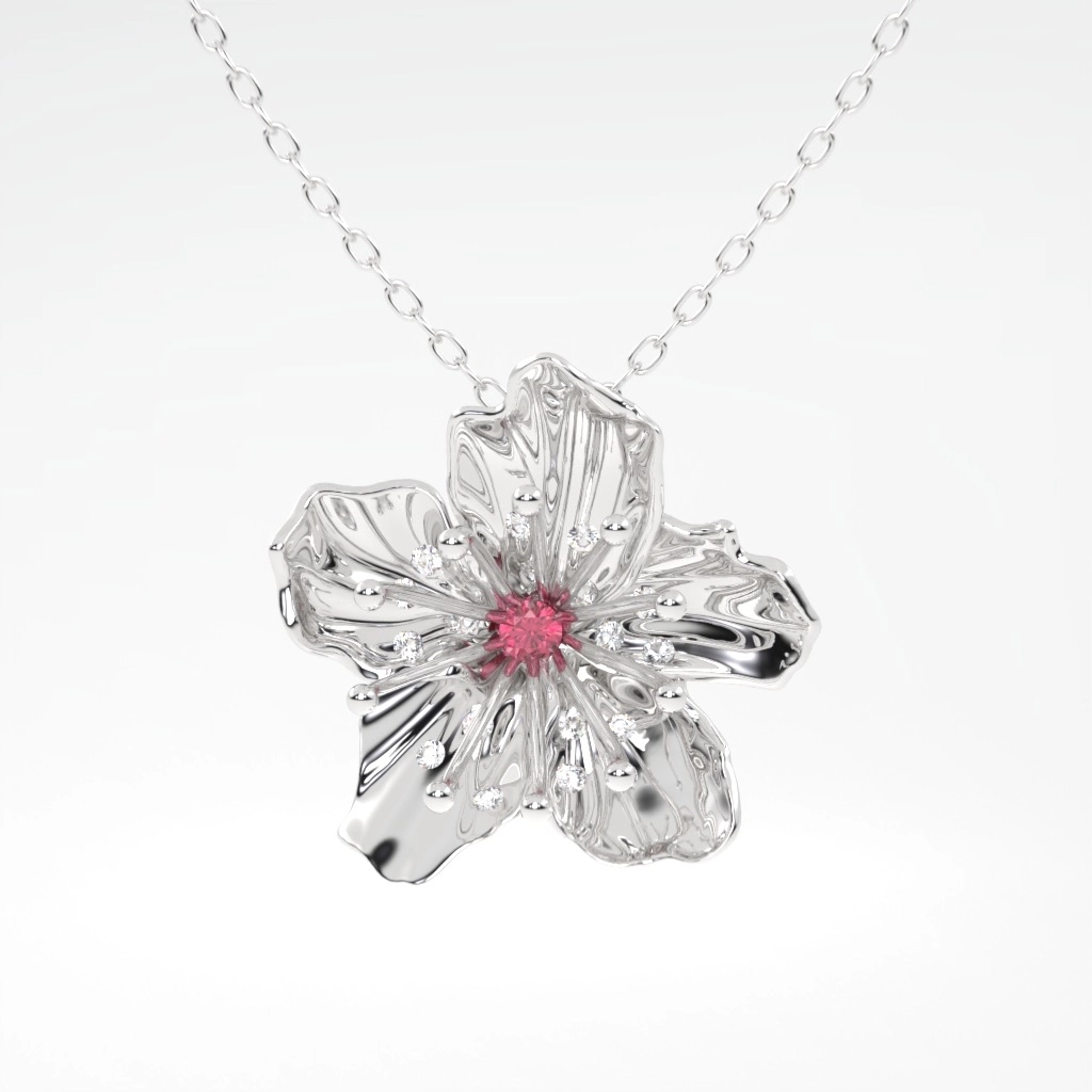 COLAR FLOR DE CEREJEIRA COM RUBI OURO BRANCO