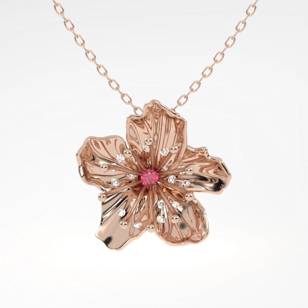 COLAR FLOR DE CEREJEIRA COM RUBI OURO ROSÉ