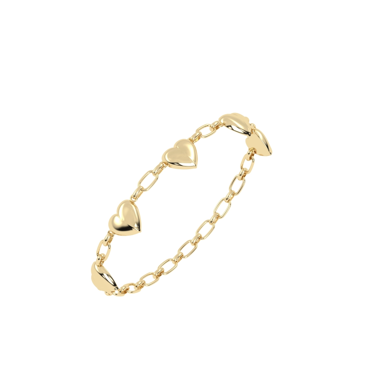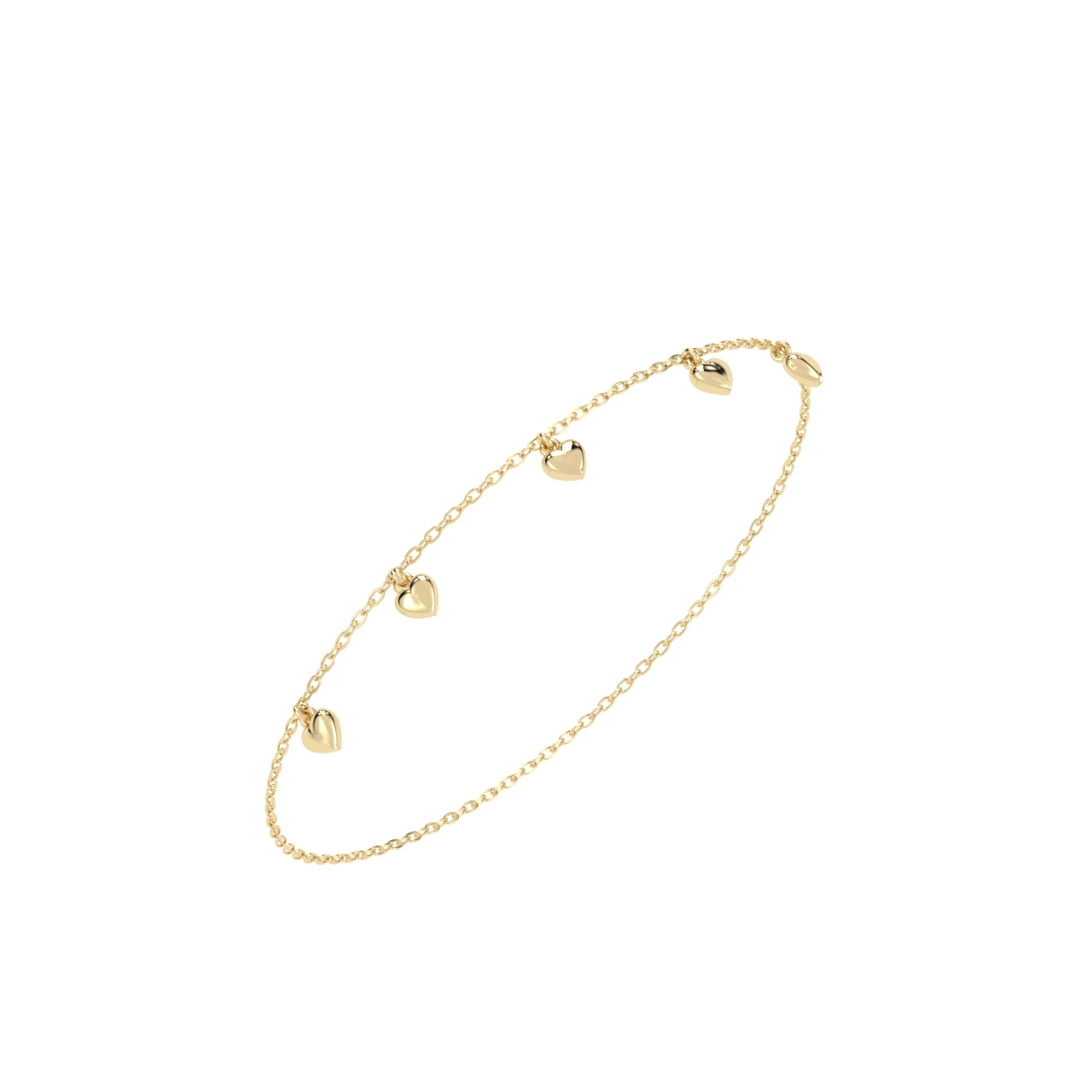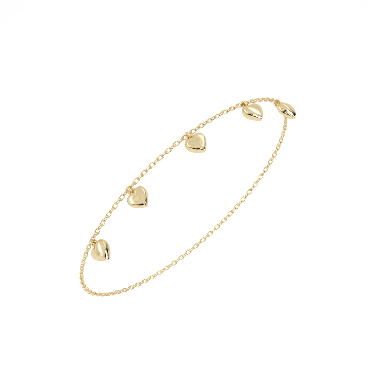 PULSEIRA CINCO CORAÇÕES OURO AMARELO
