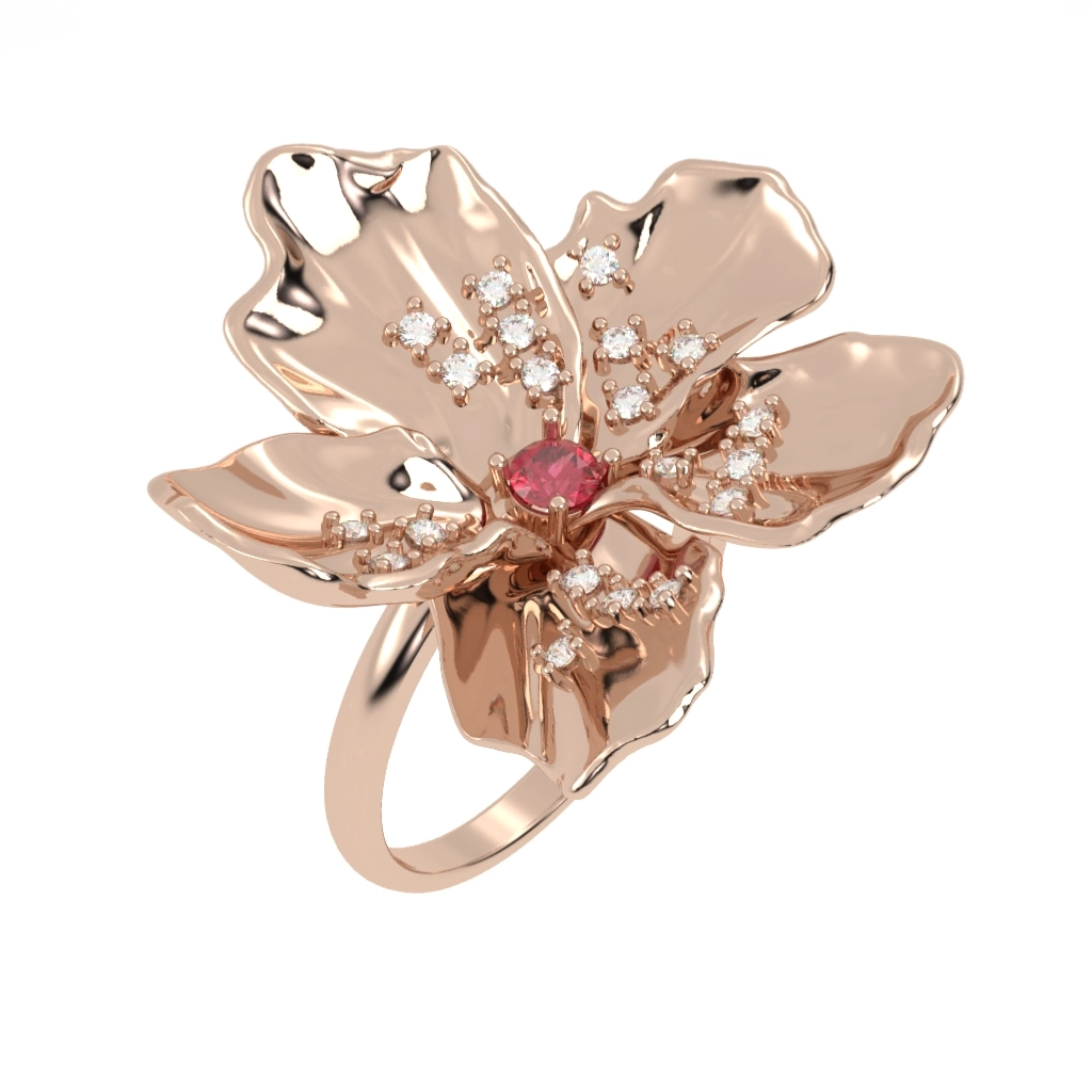ANEL FLOR DE CEREJEIRA GRANDE COM RUBI OURO ROSÉ